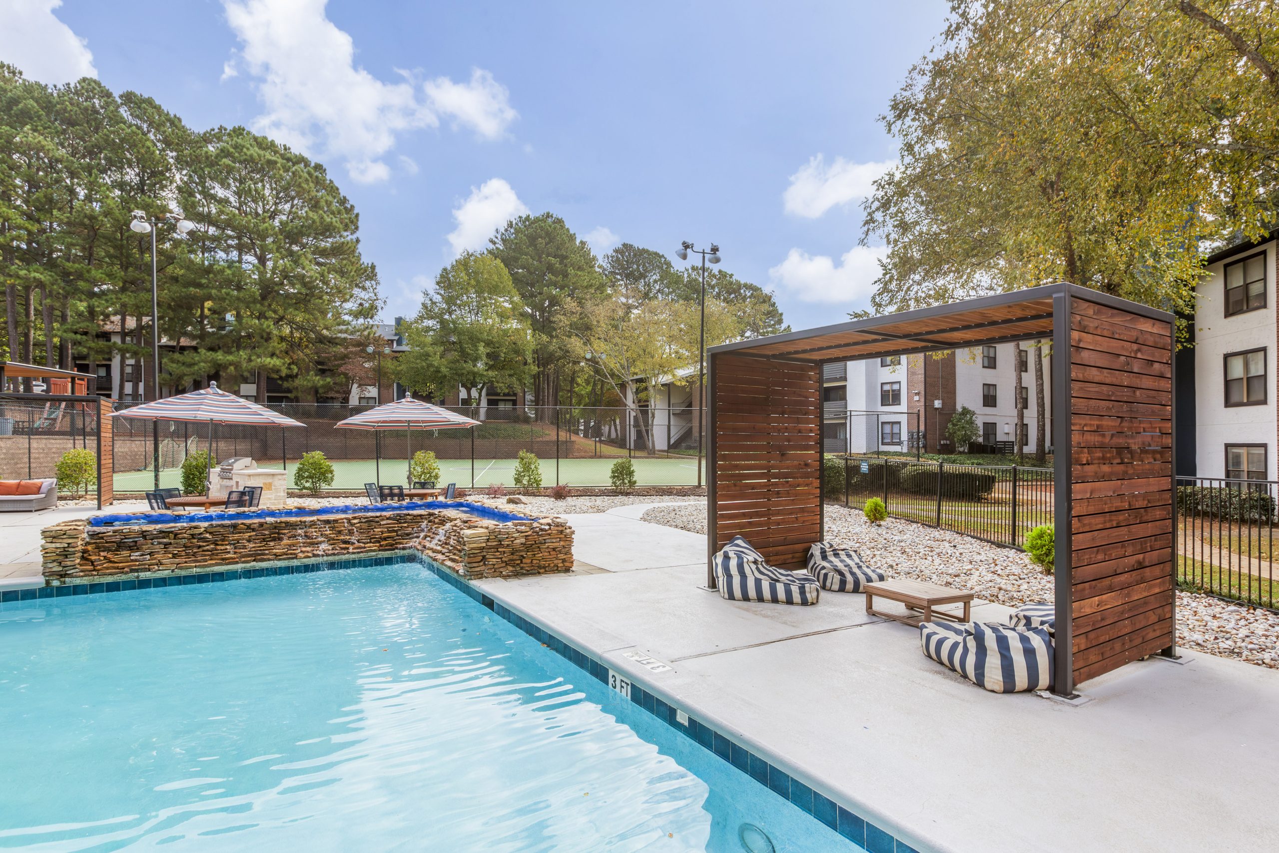 Experience what makes Doraville special with a touch of modern elegance at The Rowen. Nestled in a peaceful neighborhood with serene wooded and creek views, our community offers a tranquil escape from the everyday hustle. Unwind by the resort-style pool, challenge yourself at the multi-sport court, or stay productive in the fully-stocked business center. The Rowen boasts stylish apartment homes featuring modern finishes, like ceramic tile backsplashes with quartz countertops, built-in bookshelves for a touch of personality, and private balconies or patios for enjoying the fresh air.